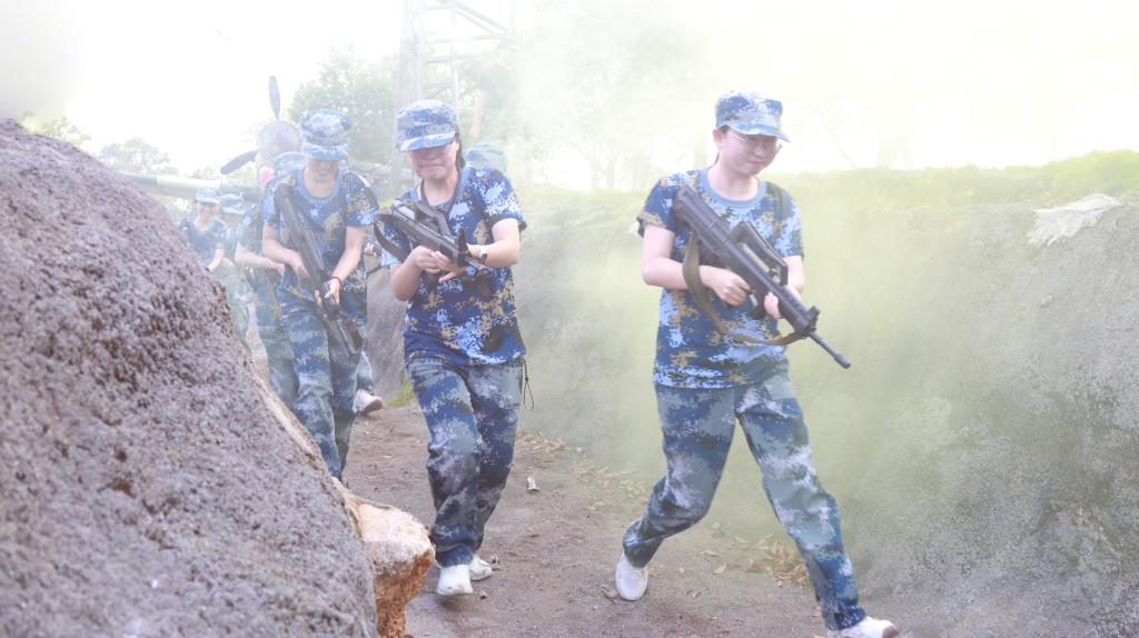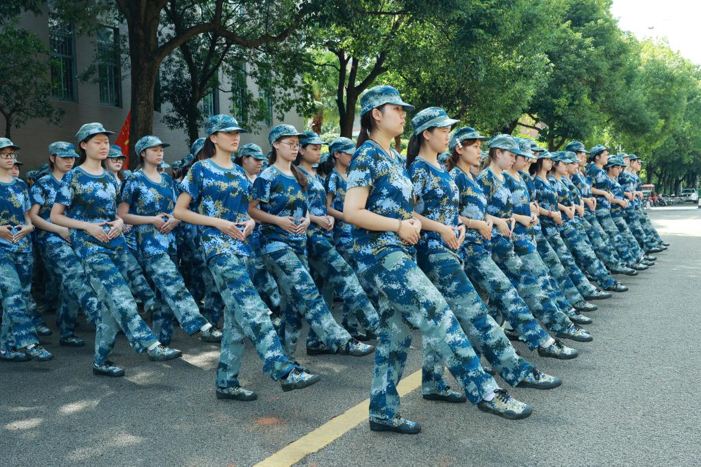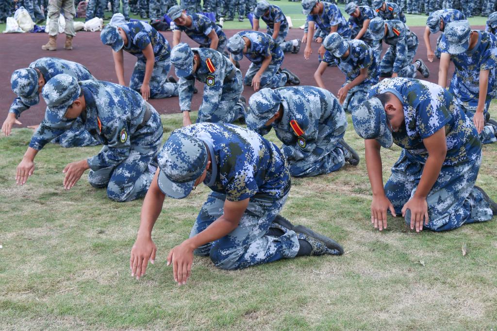 军训涵盖多项实战化训练内容。在“战术训练”中,学生掌握卧倒、起立、匍匐前进等单兵战术动作;“防卫技能与战时防护训练”包括格斗基础、战场医疗救护、核生化防护等,提升学生应急处置与自我保护能力;“轻武器射击”通过激光模拟枪开展据枪、瞄准、击发训练,增强国防实操技能;电磁频谱监测、识图用图等现代化军事课程也穿插进行,拓宽学生视野。