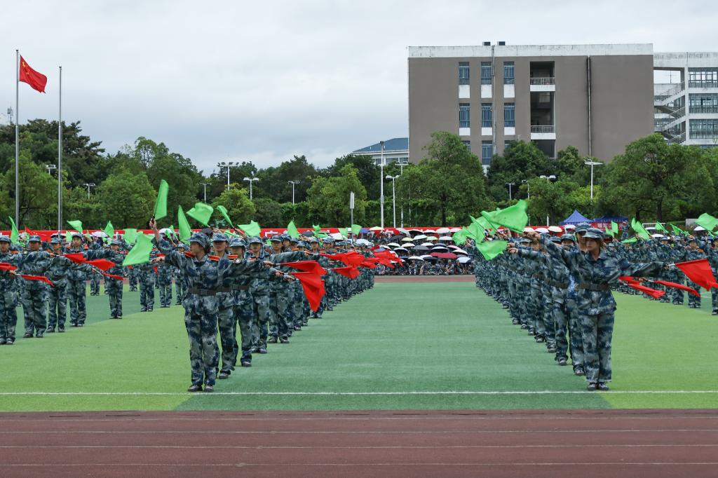 军训伊始,“军训第一课”在新体育馆举行,为学生树立国防观念、明确训练意义奠定基础。随后在训练中穿插开展的“共同条令”教育,强化了学生的纪律意识和军人基本素养。9月17日晚,“爱我国防”主题讲座进一步激发学生投身国防、热爱祖国的情怀,引导学生树立远大报国志向。