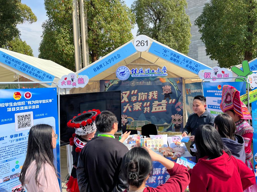 始终坚持以青年为本,为青年全面发展、施展才华创造条件、提供舞台。一是创优第二课堂服务成长成才。深化首批全国高校共青团“第二课堂成绩单”制度试点建设,打通第一、第二课堂学分转化体系,“第二课堂”发布课程近2.1万门,累计发布学分逾14.6万分,共青团中央专题报道学校“第二课堂”建设经验。二是壮大社团领域汇聚青春动能。加强和改进学生社团建设,打造社团巡礼、社团文化节等一批社团文化品牌活动,先后获得“全国百佳大学生理论学习社团”“全国百优创业社团”等国家级荣誉近10个。三是弘扬先进文化丰富精神素养。将爱国主义教育、理想信念教育融入校园文化活动,精心举办“歌唱我们伟大的祖国”大型艺术思政课、“山河壮歌 挺膺有我”主题思政歌会等校园文化活动,平均年受众学生达2万余人次,积极组织和参加各类文艺赛事活动,荣获包括广西大学生艺术展演一等奖在内的各类奖项150余项。四是心系青年所盼维护发展权益。聚焦维护青年自身权益,持续开展五四青年座谈会、书记校长午餐会等服务品牌活动,通过实施“团团促就业”每年累计帮扶大学生就业100余人,校学生会权益维护品牌项目入选全国高校学生会组织交流展示活动项目。