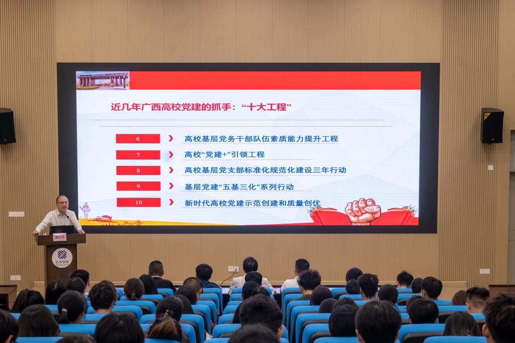 一是建强基层党组织战斗堡垒。扎实推进“五基三化”系列行动,切实增强基层党组织政治功能、组织功能;推行“艺院先锋”示范,党员队伍干事创业更有作为,“一融双高”战斗堡垒更加坚强,学院党组织获批首批广西高校示范党建品牌和全区“强国行”团队。二是强化党建与业务有机融合。引导党支部与教研室工作耦合联动,指导党支部协同教研室承办全国数媒年会、全区轻工业产教对接会等,奔赴深圳、南宁等地深化产教合作,推动重点工作出新出彩,党建与业务融合机制更加完善。三是以高质量党建引领事业高质量发展。通过建强堡垒打硬仗,抓好党建带发展,推动事业实现新突破:学院获批为中国工艺美术大师传承创新基地、广西文化和旅游研究基地,并先后在省部级人才、国家级一流课程、全国高校教师教学创新大赛奖项等方面实现零的突破;国家级科研项目、入选全国美展作品数量大幅增长,年度科研经费规模扩大6倍,设计学软科排名提升88个位次、进入全国前35%、跃居广西榜首。