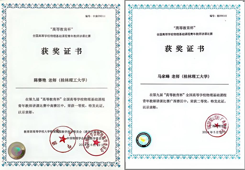 学院教师荣获全国物理讲课比赛中南地区一等奖、广西赛区二等奖