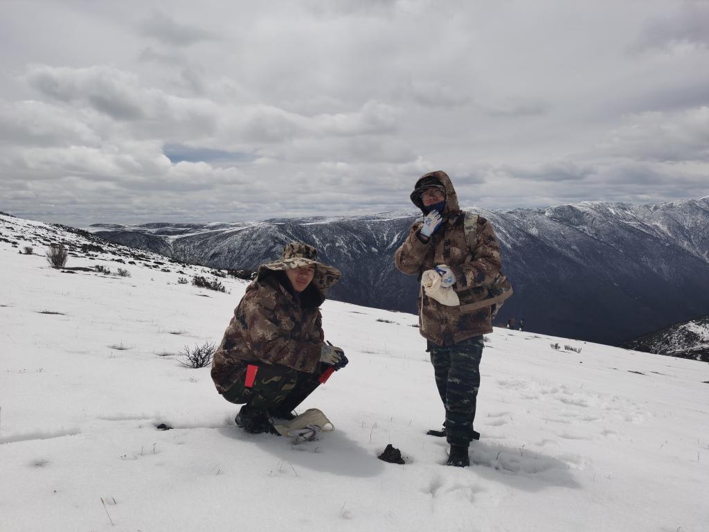 川西高原冒雪进行地电化学采样工作