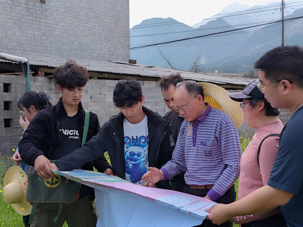 在桂北广子田矿区现场讨论采样点的布设工作