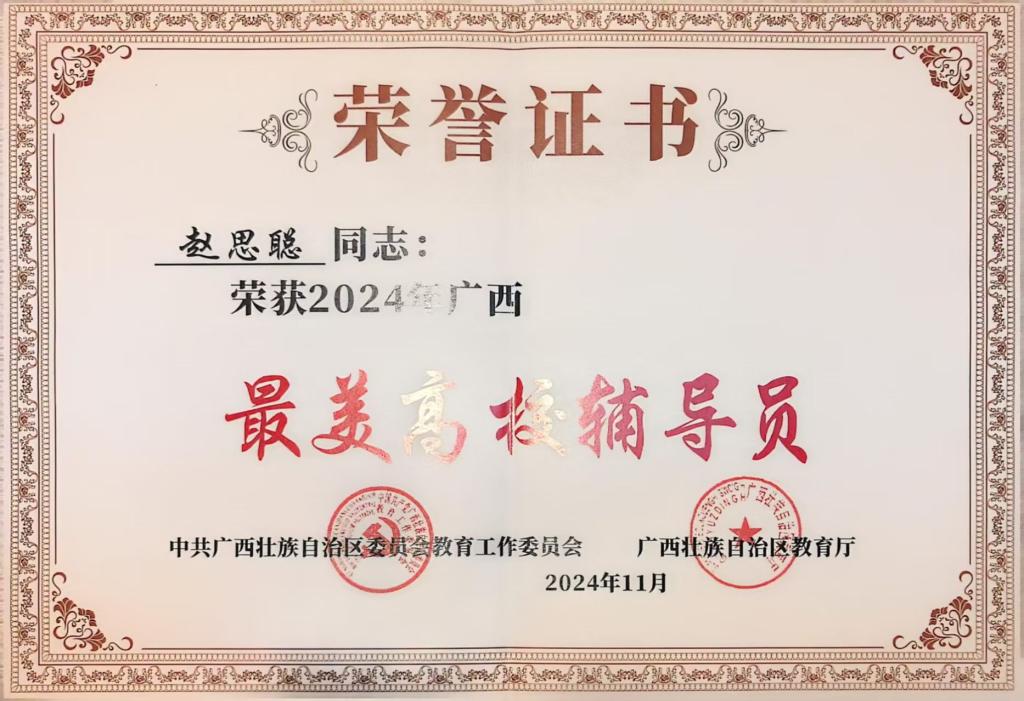 beat365辅导员赵思聪获广西“最美高校辅导员”