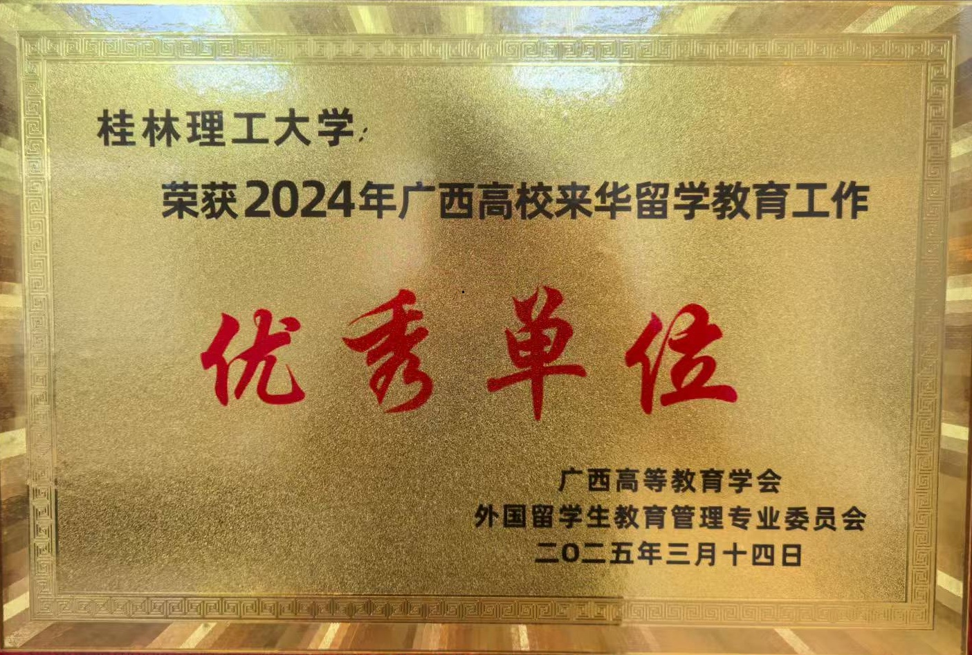 荣获2024年广西高校来华留学教育工作优秀单位
