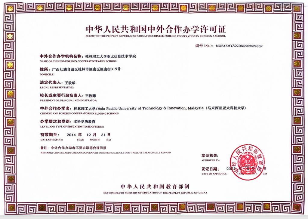 2025年与马来西亚亚太科技大学合作举办“beat365官方网站亚太信息技术学院”获教育部批准
