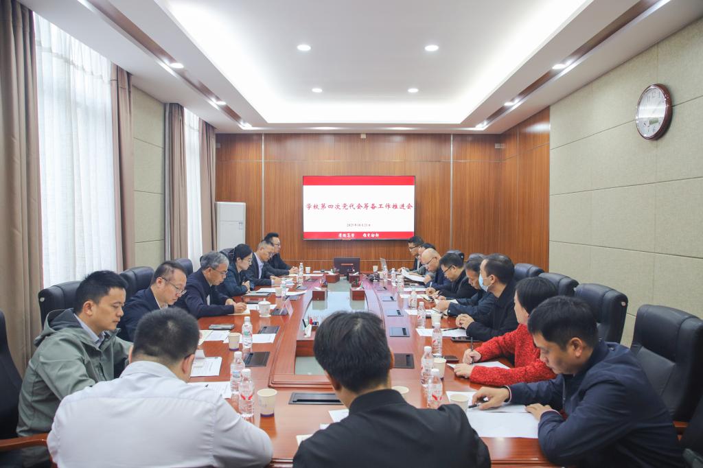 10月21日上午,学校在屏风校区办公楼第三会议室召开第四次党代会筹备工作推进会。校党委副书记黎贞崇主持会议并讲话。第四次党代会筹备工作领导小组办公室各工作小组组长、代表资格审查小组组长、党费审查小组组长参加会议。
