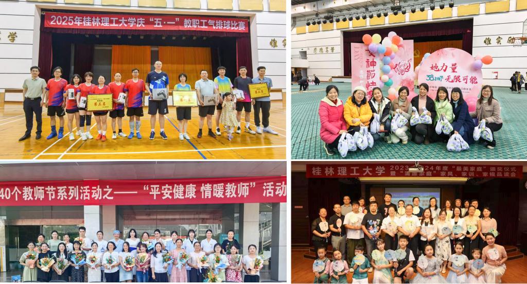 校工会牢固树立以教职工为中心的工作理念,用心用情用力解决教职工急难愁盼问题。一是权益维护扎实有效。历经多年攻坚克难,基本完成“学府雁苑”教职工住宅小区不动产权证办理这一重大民生工程;创新提出并推动落实“以土地等资产抵押抵转清偿债务”整改方案,完成不动产抵押权证办理,实现巡视整改问题销号。二是服务帮扶温暖人心。持续开展“春节”“五一”“端午”等节日慰问,发放慰问品金额累计超千万元;坚持实施职工医疗互助保障参保、生病生育探望、退休离岗慰问、困难职工帮扶、“夏送清凉”等暖心工程;健全完善教职工疗休养制度,每年组织多批次一线教职工参加疗休养。三是品牌活动创新拓展。创新开展气排球“家庭赛”“她力量”女教工活动、职工主题沙龙、兴趣班等特色文体活动,年均举办活动数十场,参与教职工数千人次。教职工文体团队在各类竞赛中屡创佳绩,荣获2023年全区高校教职工气排球比赛暨全国教科文卫体系统职工气排球比赛广西赛区选拔赛第一名以及多个教职工文体比赛冠军,充分展现了beat365教职工团结拼搏、昂扬向上的精神风貌,极大丰富了教职工精神文化生活,营造了和谐温馨的校园氛围。