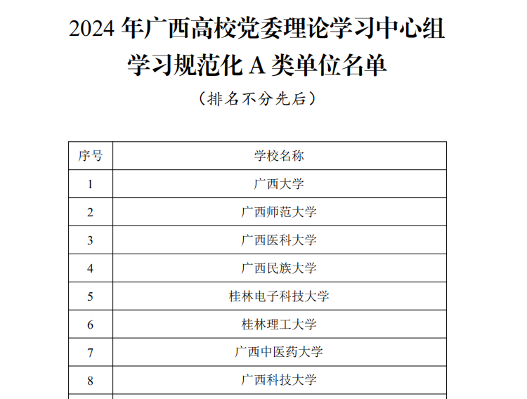 学校获评2024年广西高校党委理论学习中心组学习规范化A类单位