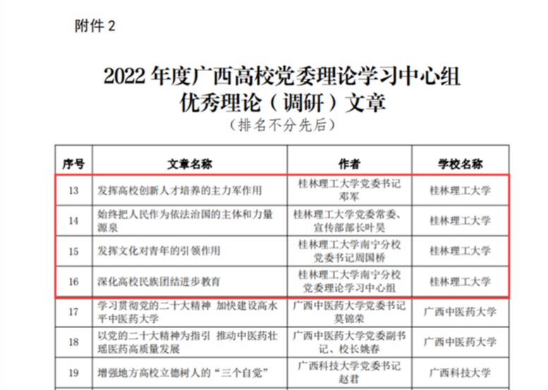 4篇文章入选广西高校党委理论学习中心组优秀理论(调研)文章