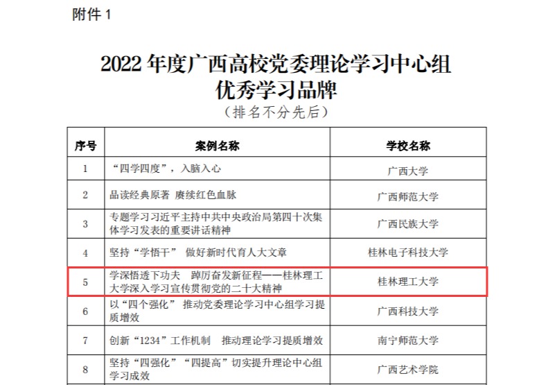 党委理论学习中心组案例入选2022年度广西高校党委理论学习中心组优秀学习品牌