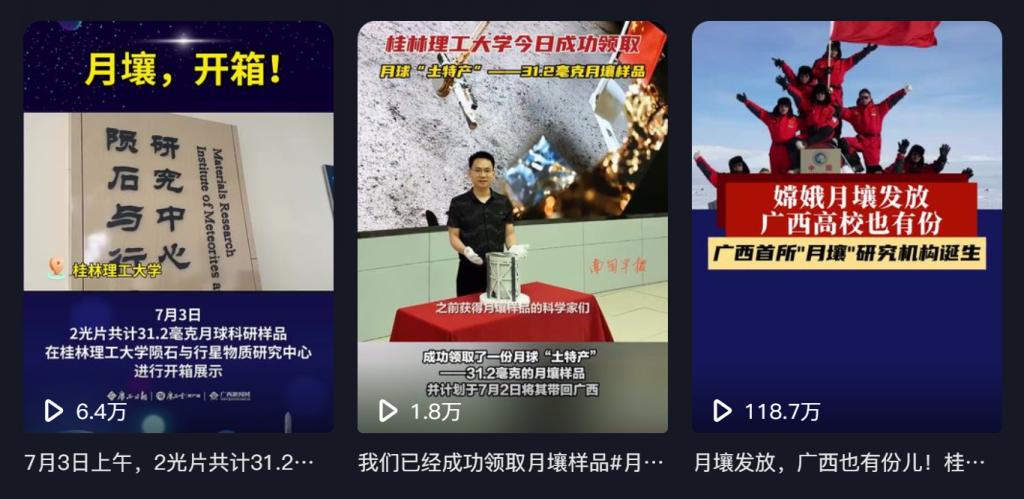 学校获得月壤相关报道获得全社会广泛关注,单个视频(月壤视频)最高播放量超120万次