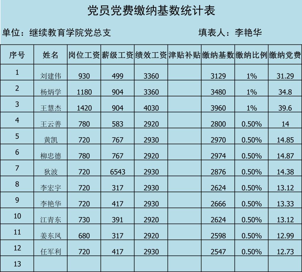 koko体育官网学员党费缴纳基数统计表