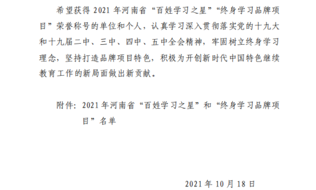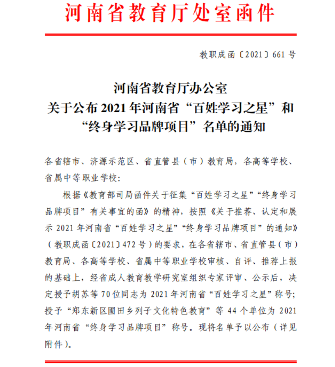 近日,省教育厅发布《河南省教育厅办公室关于公布2021年河南省“百姓学习之星”和“终身学习品牌项目”名单的通知》,由koko体育官网牵头申报的高素质农民培训项目被授予2021年河南省“终身学习品牌项目”,这是koko高质量推进高素质农民培育,助力乡村振兴战略实施的又一重大成果。