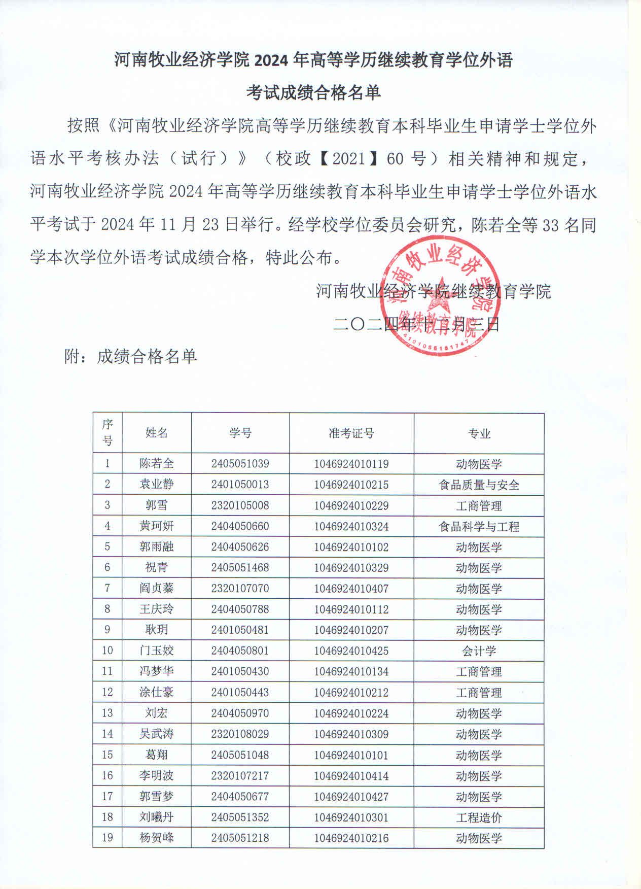 koko体育官网2024年高等学历继续教育学位外语考试成绩合格名单